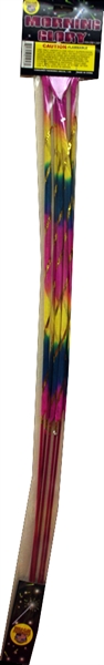 Perfect in it's simplicity and a king among classic childhood firework favorites, the sparkler is hand-held firework that burns at approximately a foot per minute while emitting bright, intense colored flames, sparks, and other effects. Sparklers are generally formed around a thin non-combustible metallic wire that has been dipped in a thick batter of slow-burning pyrotechnic composition and allowed to dry. "Morning Glory" type sparklers consist of a composition filled tube attached to a bamboo rod using brightly colored tissue paper and ribbon. These giant multi-colored torch sparklers change their pigment as they burn down. At 3 feet long they last 3 minutes!