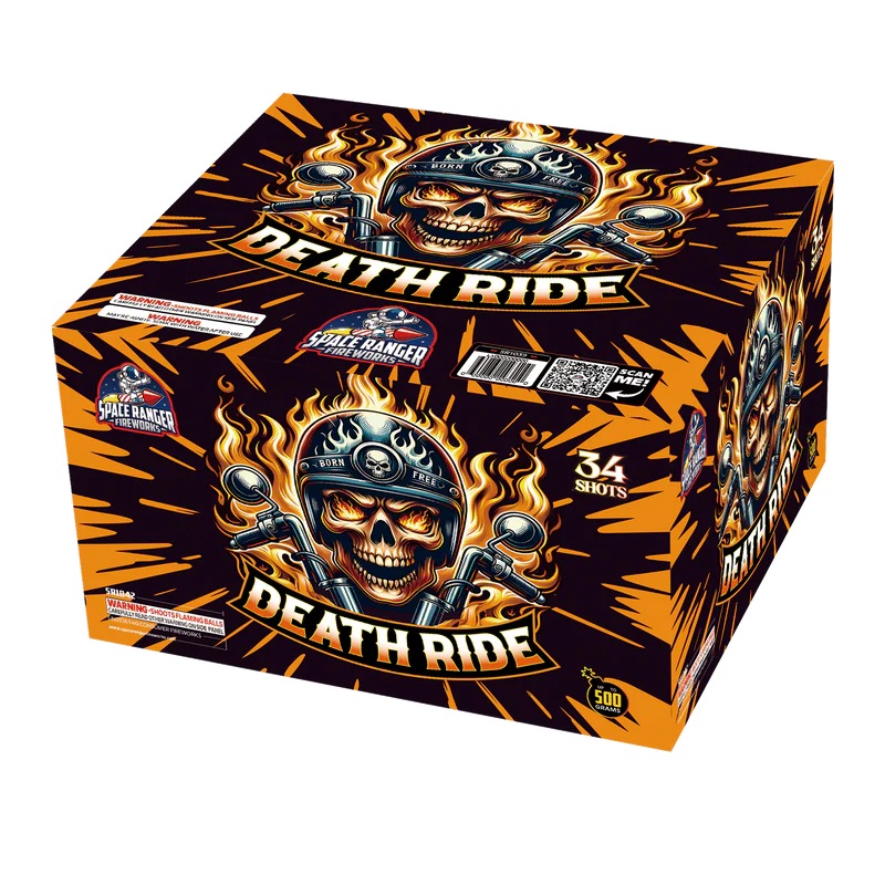 This one will get you motor runnin'. Crackling palms with flying colorful peonies and sparkling mines are bookended by super-loud fanning burst shots.